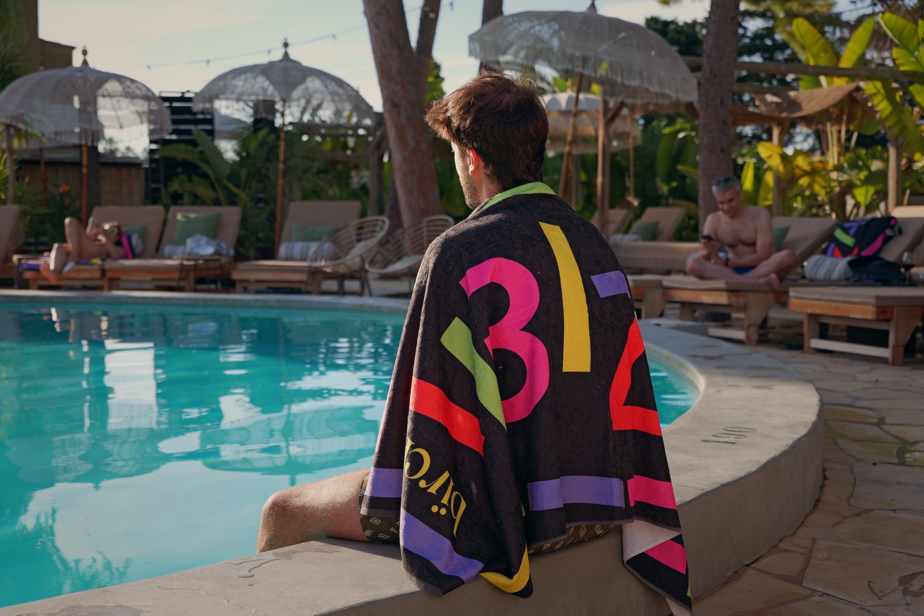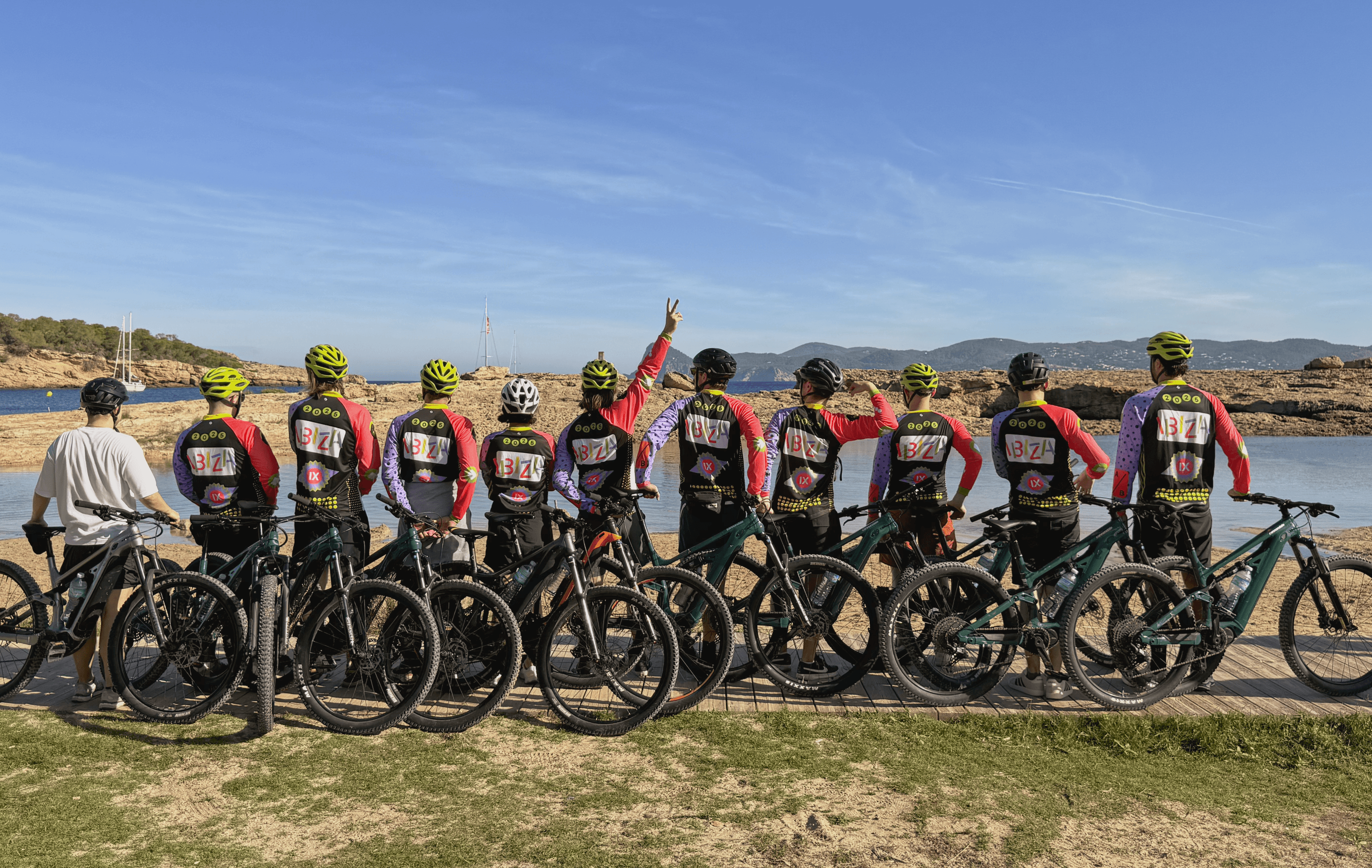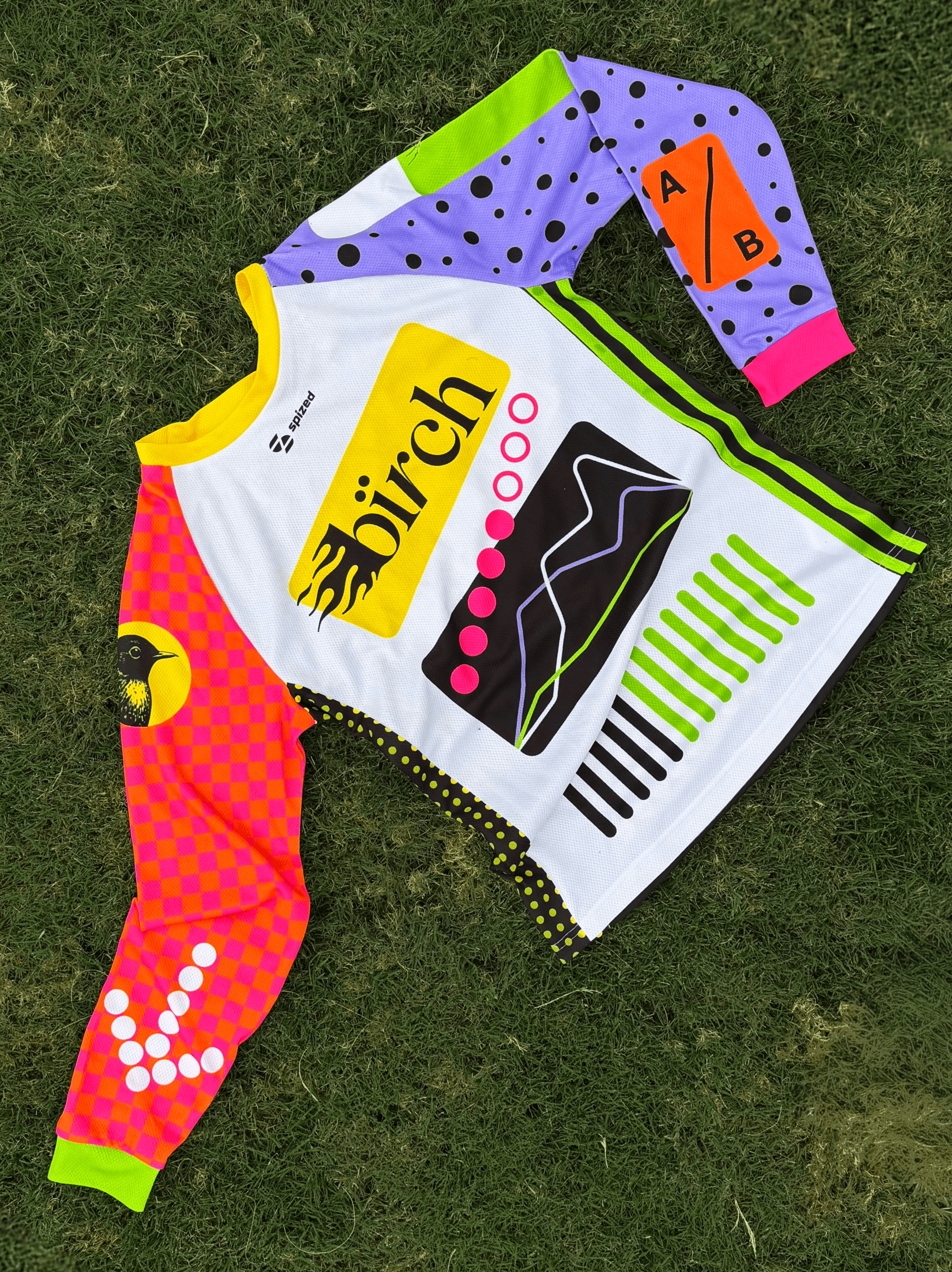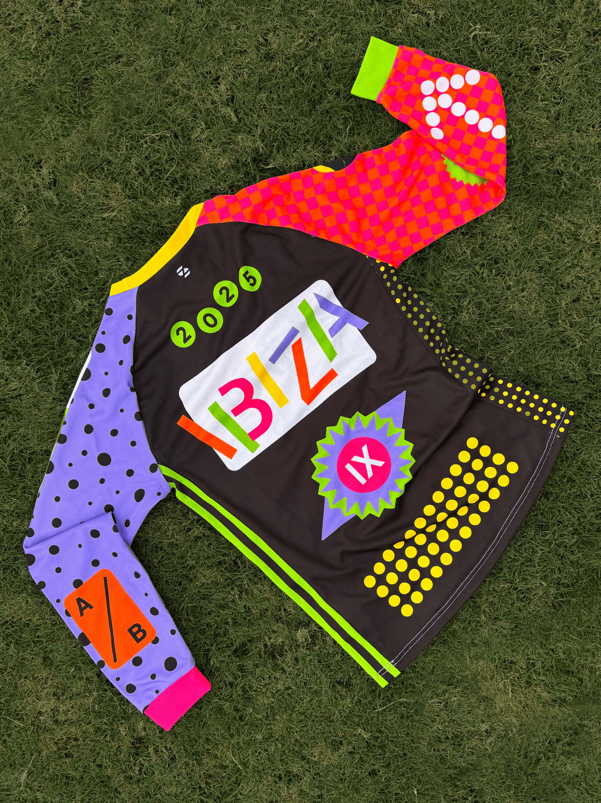 A merch set created for the Bïrch team offsite in Ibiza, including cycling jerseys for a ride through a nature reserve, beach towels, long sleeves, pins and other small items. Designed as functional objects for fun and leisure.